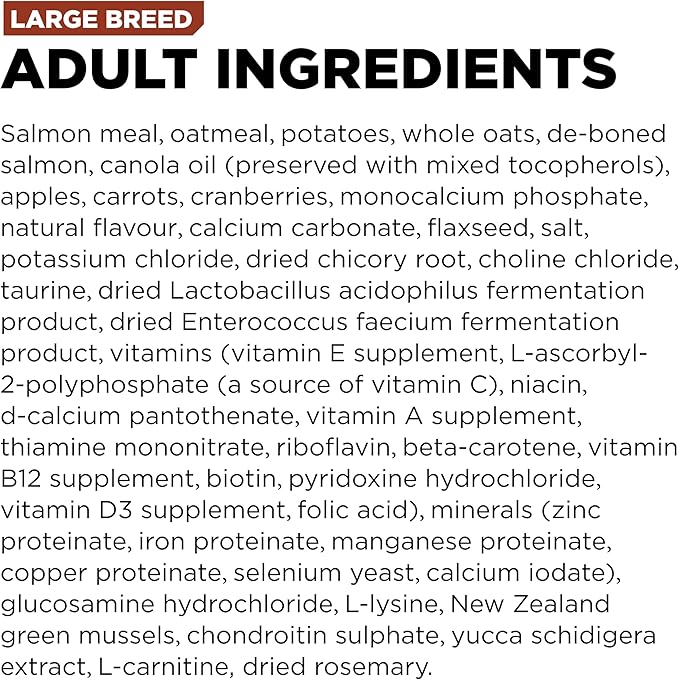 • PREMIUM INGREDIENTS: Premium-quality Salmon provides your dog with the foundation for a delicious diet and happy life. These recipes are packed with antioxidants from fruits & vegetables that bolster your dog's immune system function