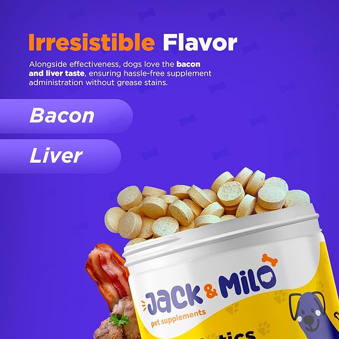 Jack & Milo Probiotics for Dogs, Digestive Enzymes, Allergy & Immune Support Probiotic-Dog Probiotics, Veterinary Grade, 7.5 Billion CFU's +Pancreatic 4X, Unique Blend- USA Made, 120 Tablets