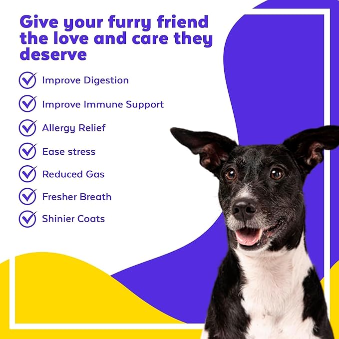 • VET-APPROVED PROBIOTIC POWER: Our unique blend of probiotics fosters the growth of beneficial gut bacteria. Combined with a specialized blend of enzymes (Pancreatic 4x), it enhances nutrient absorption to support your dog's overall well-being. USA MADE.