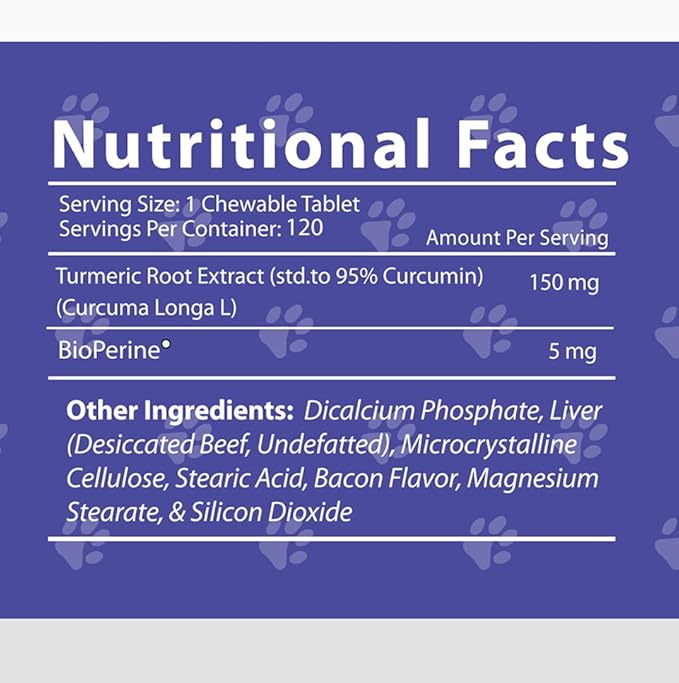 • JOINT FLEXIBILITY: Promote your dog's mobility and flexibility with the joint-loving benefits of turmeric and Bioperine combined. Those 2 ingredients will work synergistically to enhance each other's benefits.