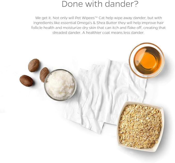 • TARGETED, BIO-BASED INGREDIENTS: More than just soap and water, Pet WiPees Cat All Purpose are wipes for cats formulated with targeted ingredients that can help prevent against irritants while gently cleansing and moisturizing the skin and coat. Ingredients like salmon oil for cats, vitamin E, and shea butter work together to promote healthy skin cell growth, repair the coat, and help to reduce dander.