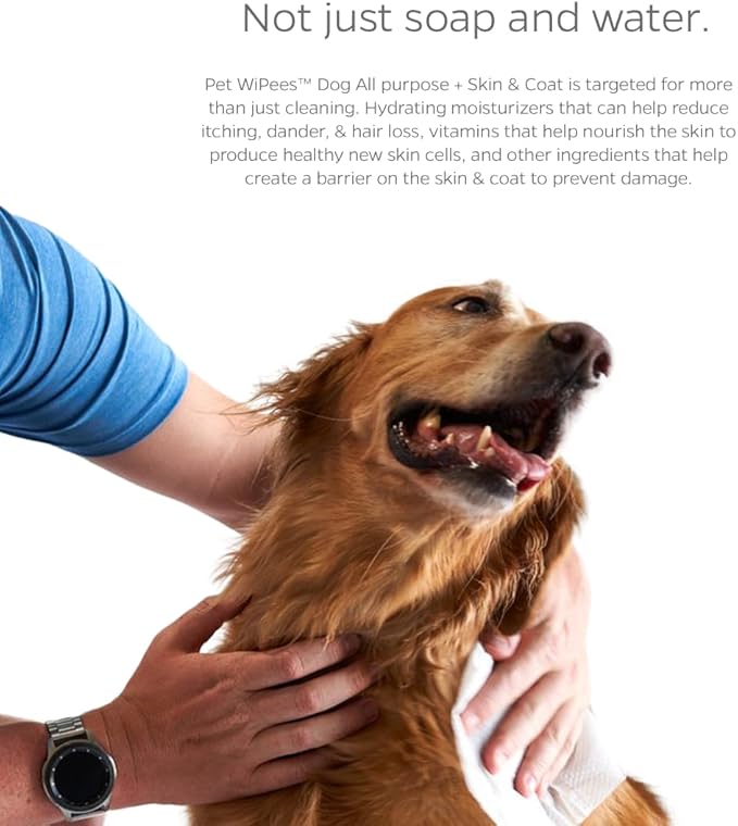 • TARGETED, BIO-BASED INGREDIENTS: Skin issues are the most common ailments our pups face. More than just soap and water, Pet Wipees Dog All Purpose + Skin & Coat are dog wipes formulated with target ingredients that can help prevent against irritants while moisturizing the skin and smoothing the coat. Ingredients like salmon oil for dogs, vitamin B complex, and keratin work together to promote healthy skin cell growth, repair the coat, and help to reduce dander.