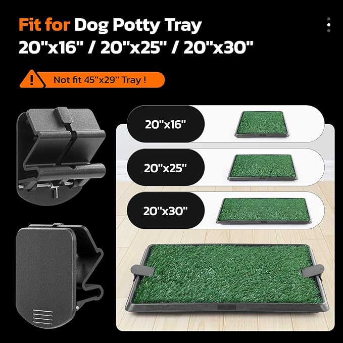 • 【Fits most of dog potty loo tray】The plastic clips is suitable for Pick For Life 20''x16''/20''x25''/20''x30'' dog potty tray. NOT SUIT FOR 45''x29'' tray. The plastic thickness of different trays will vary, if the plastic clips don't fit your tray, please contact us.