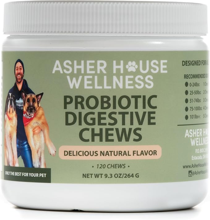 Asher House Wellness | Probiotic Digestive Chew Supplement for Dogs | 2 Billion CFU | Gut Health | Enzymes |