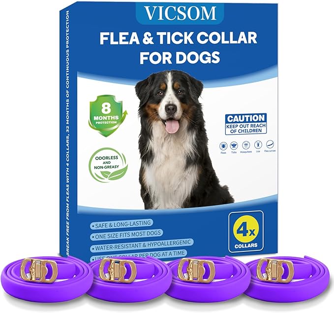 • 💫 NON-GREASY: Our dog flea collar is made with non-greasy materials. VICSOM dog flea collars are designed to be easy to use for dog owners. Our 4 pack of flea collar dog is very easy to apply and hassle-free—each package of flea collars for dogs is attached with a user manual. We also pack our products in tin foil and sealed boxes and will get back to you within 24 hours if there are any problems.