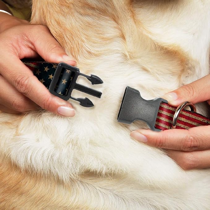 Buckle-Down Plastic Clip Collar - Vintage US Flag Stretch - 1" Wide - Fits 9-15" Neck - Small (Pack of 2)
