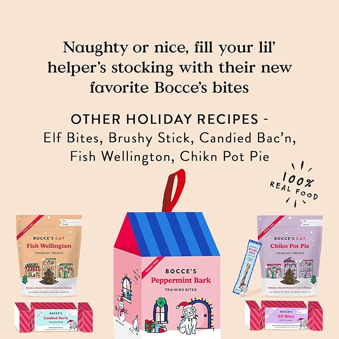 Bocce's Bakery All-Natural, Seasonal, Peppermint Bark Training Bites for Dogs, Wheat-Free, Limited Ingredient Training Treats in Ornament Box, Inspired by Christmas, 2 oz