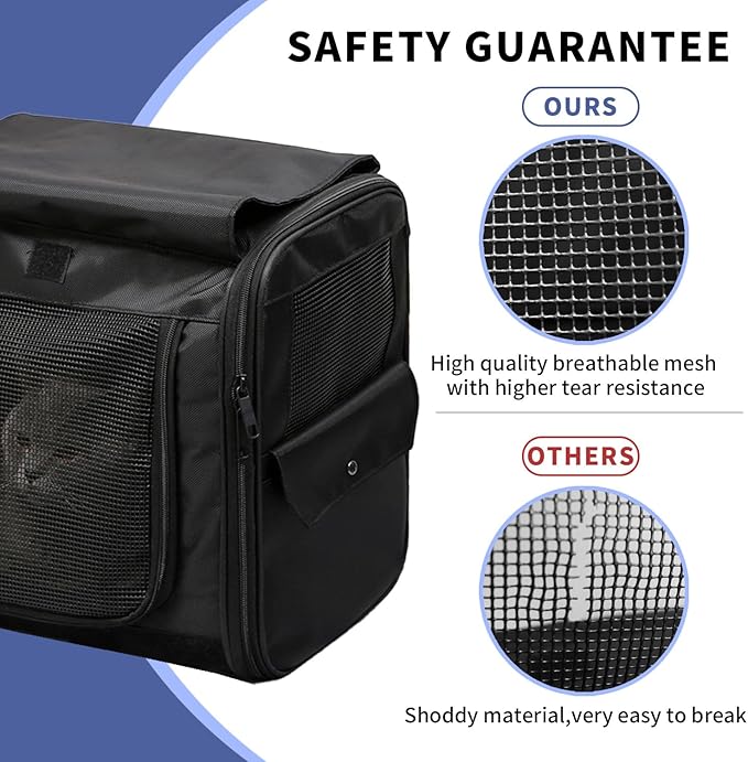 • 😻【Better Structure】Good ventilation design, the cat backpack carrier has four side mesh windows to ensure ventilation and breathability, mesh window on the top to provide more visibility, entrances on both sides as well as the front, easy access for pets. The pet backpacks is solidly constructed and the hard mesh resists scratches and bites, making it hard for your pet to destroy him. Excellent design provides enough space for your pet to move around.