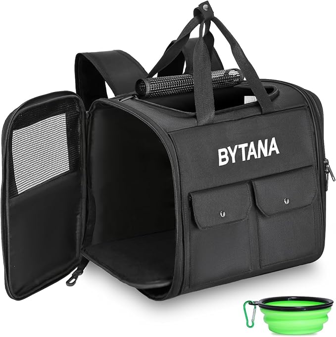 • 😻【Safe and Reliable Design】When you want to open the top window and let your pet's head out, don't worry, there is a safety leash inside the pet backpack that can be attached to your pet's collar to prevent your pet from escaping. Pockets on both sides and the front, you can store food, water bottle, poop bags and some necessary accessories, we also have a free feeding bowl, convenient to feed your pet.