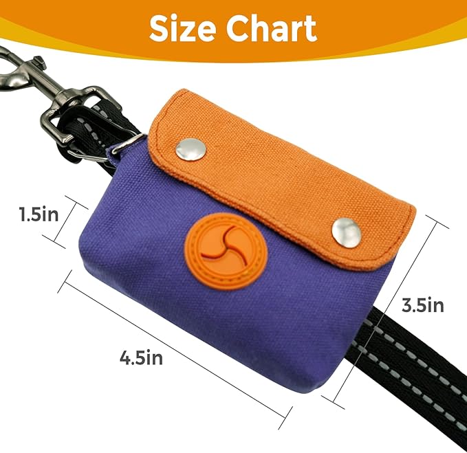 Dog Poop Bag Holder, Portable Dog Poop Bag Dispenser with 1 Metal Clip, Orange Button Canvas Poop Pag Polders for Leashes