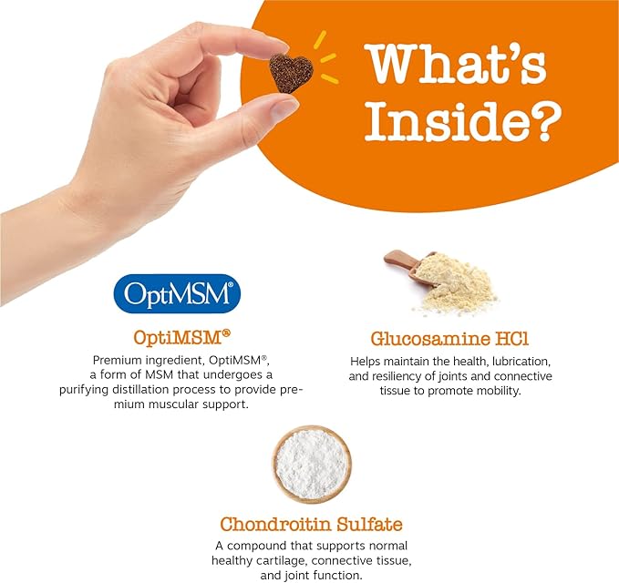 • Featuring OptiMSM – At 400 mg per chew, OptiMSM is a premium form of MSM (Methylsulfonylmethane) that undergoes a purifying distillation process to help your dog flex their muscles.