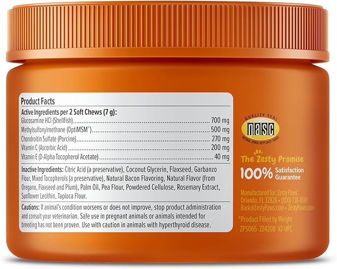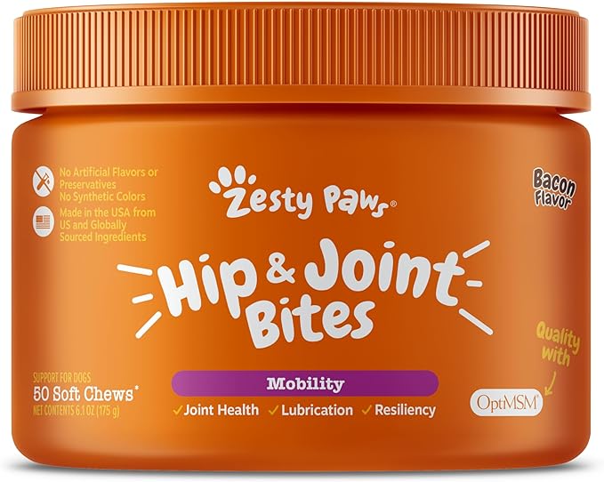 Zesty Paws Hip and Joint Supplement for Dogs - Glucosamine for Dog Joint Supplement - with Chondroitin, MSM, Vitamins C and E for Dog Joint Relief - Mobility Bites Bacon – 50 Count