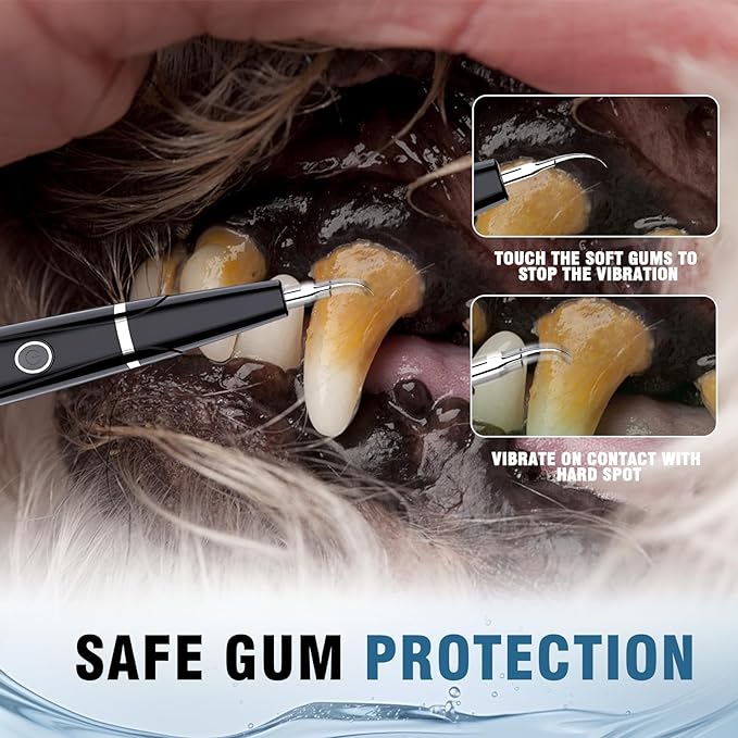 • FAST AND EFFICIENT: The ultrasonic dental cleaner in a short period of time without the need for multiple repetitions, which helps to minimize discomfort and anxiety, especially for pets that are easily startled.Please note: The ultrasonic dental cleaner only vibrates when it comes into contact with the teeth, it does not vibrate when held in the hand.