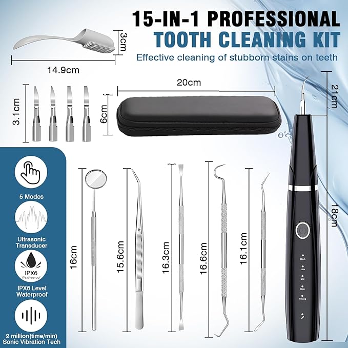 • THOROUGH CLEANING: Plaque and tartar not only affect your pet's oral health, but can also lead to loose teeth and tooth loss. Ultrasonic technology reaches into tiny cracks and hard-to-reach places in the teeth to completely remove tartar and plaque. Leaving your pet with a cleaner mouth and healthier teeth.The dog plaque remover has five working modes: soft, low,mid, high and strong.The ultrasonic technology is very safe and there will not be any pain during the process of using it.