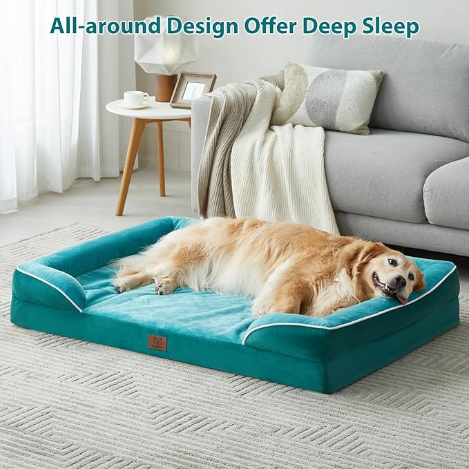 WNPETHOME Waterproof Dog Beds for Large Dogs, Orthopedic XL Dog Bed with Sides, Big Dog Couch Bed with Washable Removable Cover, Pet Bed Sofa with Non-Slip Bottom for Sleeping Green