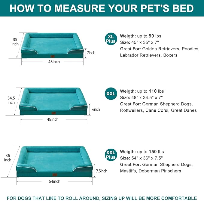 • Size: (Dog beds for XX large dogs) 48x35x7 inch dog bed XX large size dog could load-bearing less than 110lbs .For dogs that like to roll around, sizing up will be more comfortable.