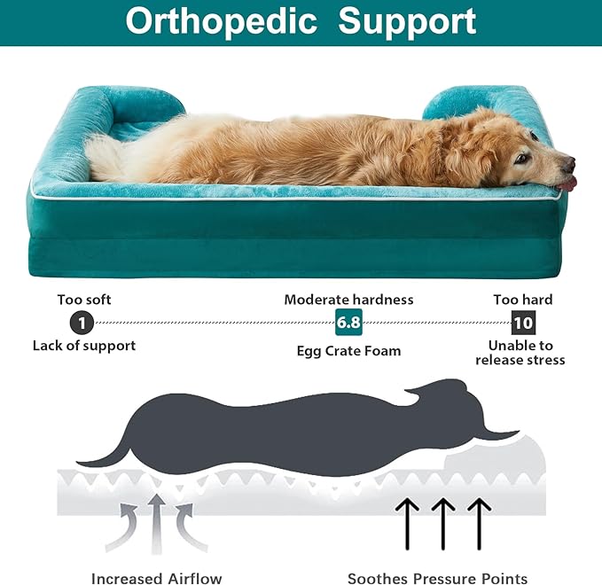 • MADE FOR COMFORT: The orthopedic dog bed features 3.5 inches of high-density egg foam to support and relieve your fur baby's muscles and joints. The large dog bed can provide extra support and safety, relieve joint pain or arthritis, and is a great choice for elderly and sick dogs.