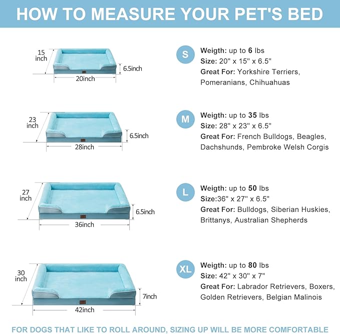 • Size: (Dog beds for medium dogs) 28x23x6.5 inch dog bed medium size dog could load-bearing less than 35lbs .For dogs that like to roll around, sizing up will be more comfortable.
