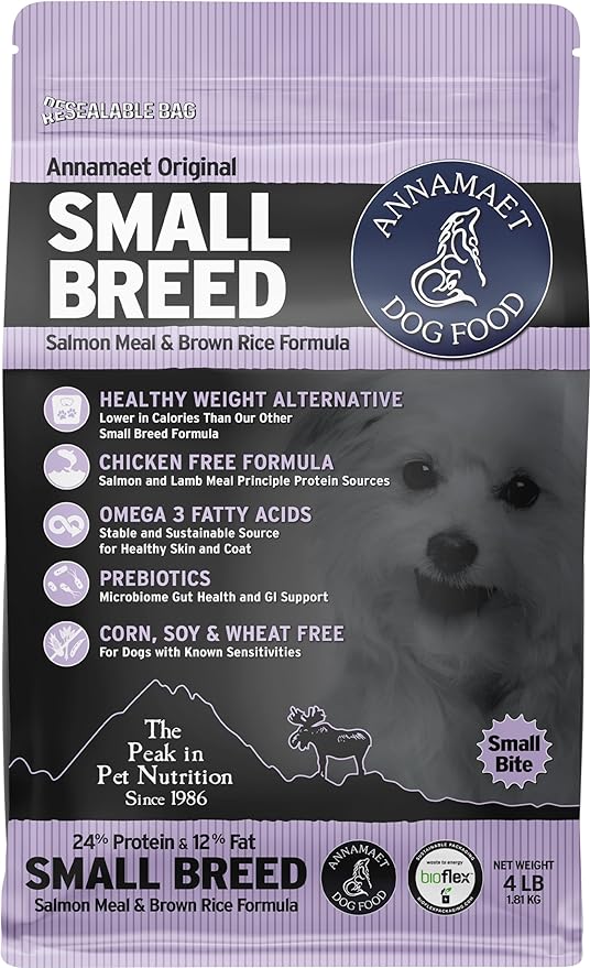 Annamaet Original Small Breed Salmon Formula Dry Dog Food, (Salmon & Brown Rice), 4-lb Bag