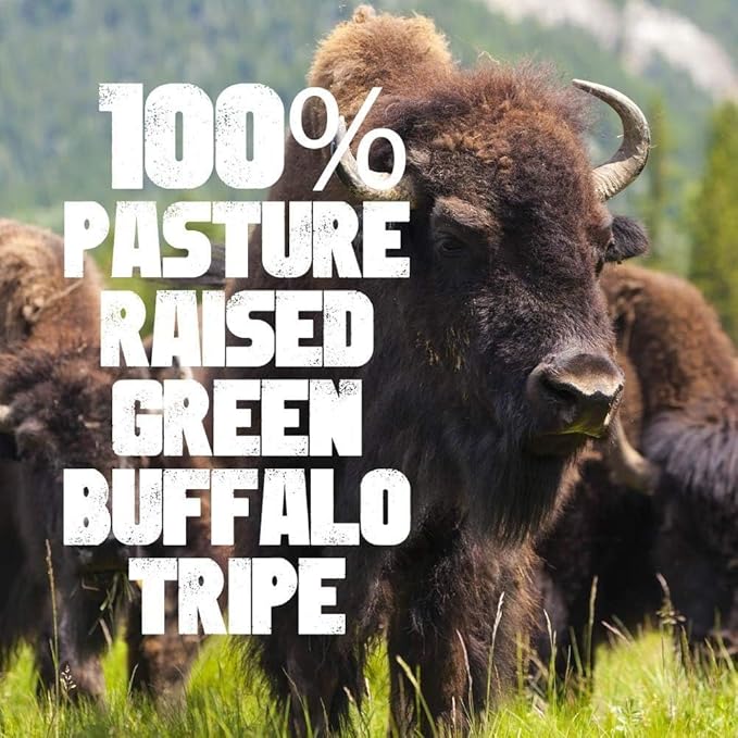 • 100% Pure Raw Green Buffalo Tripe - is considered one of the most nutritious natural food sources for dogs and is now available in an amazing training treat. This pure raw organ naturally provides protein, amino acids, digestive enzymes, probiotics, omega 3 & 6 essential fatty acids, vitamins and minerals.