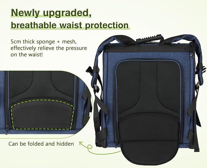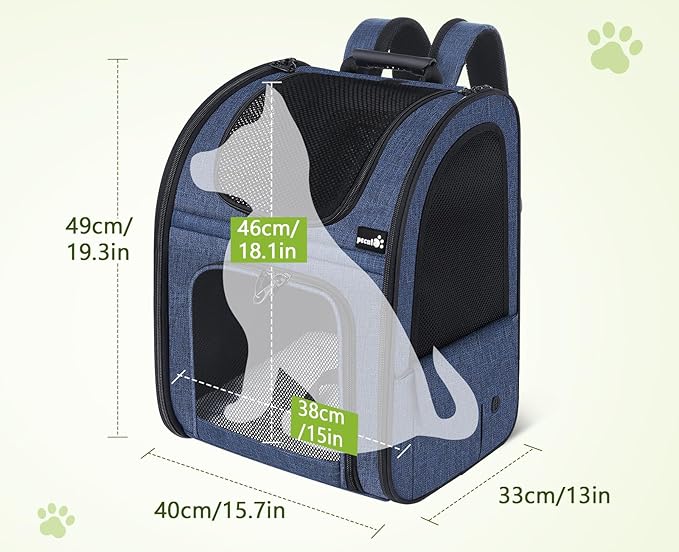 Pecute Pet Carrier Backpack, Large Cat Carrier Backpack, Expandable Cat Backpack with Breathable Mesh for Medium Large Cats, and Small Dogs, Dog Backpack Carrier for Travel Hiking Blue