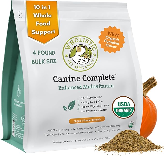 Wholistic Pet Organics: Multivitamin for Dogs Organic, Homemade Dog Vitamins and Supplements-Dog Multivitamin with Probiotics, Healthy Immune System, Digestive Support (Organic Pumpkin, 4 lb)
