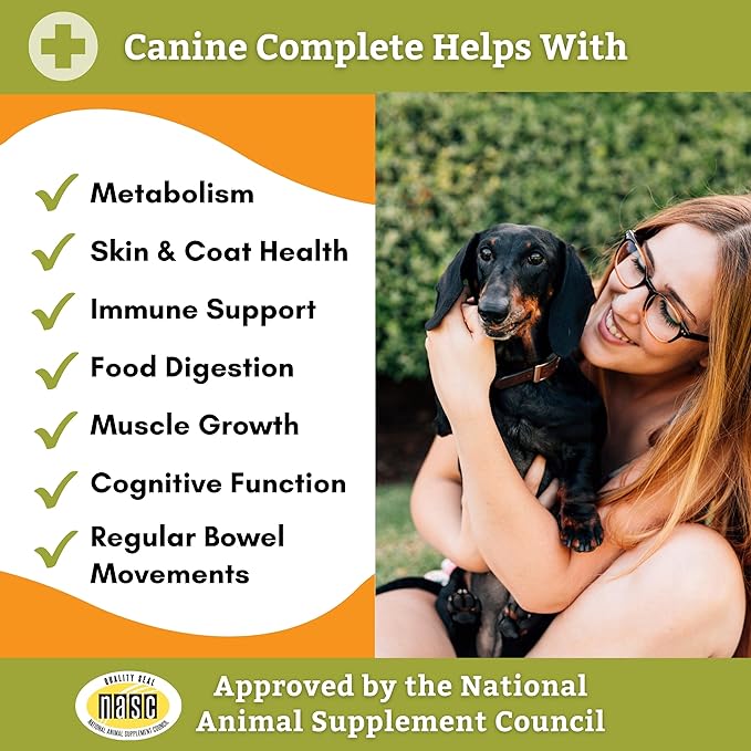 • FOR DOG'S DAILY HEALTH: Wholistic Canine Complete is a super-premium dog food supplement loaded with multivitamins for dogs and a key source of healthy protein; the all-in-one whole food supplement contains vitamins, minerals, prebiotics, probiotics, digestive enzymes, essential fatty acids, and antioxidants