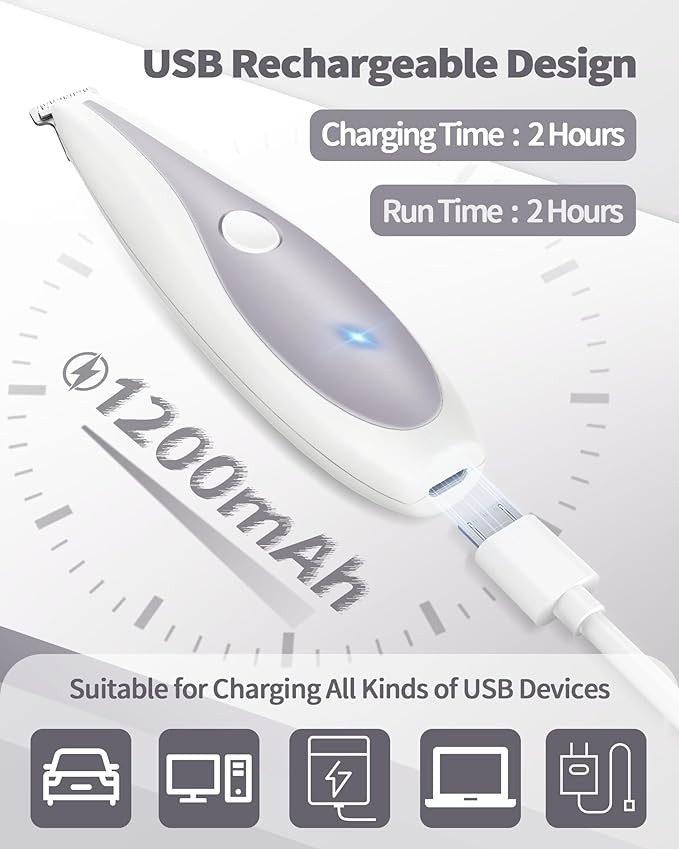• 🐾【USB rechargeable & Easy-to-grip design】The larger battery capacity is 1200mAh, which is equivalent to the battery capacity of a full-body shaving machine. It can be used for two hours after being fully charged. More importantly, it is suitable for all kinds of USB charging cables. The aesthetic master's advanced ergonomic curve design makes it easier to hold and prevents pets from being scratched due to improper force when shaving. Very friendly for beginners.