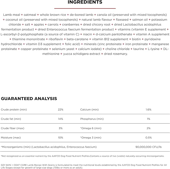 GO! SOLUTIONS Skin + Coat Care - Dry Dog Food, 22 lb - Lamb Recipe with Grains for All Life Stages - Complete + Balanced Nutrition for Dogs
