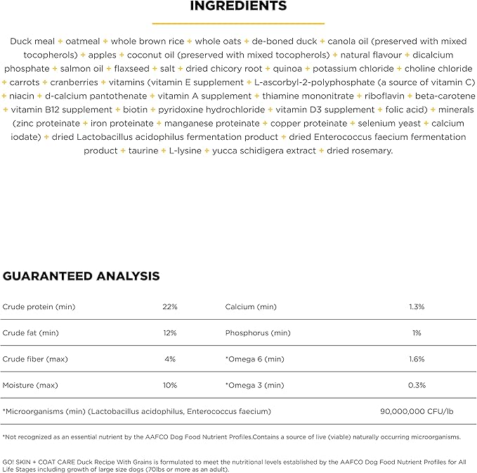 GO! SOLUTIONS Skin + Coat Care - Dry Dog Food, 22 lb - Duck Recipe with Grains for All Life Stages - Complete + Balanced Nutrition for Dogs