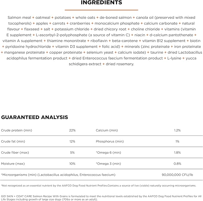 GO! SOLUTIONS Skin + Coat Care - Dry Dog Food, 22 lb - Salmon Recipe with Grains for All Life Stages - Complete + Balanced Nutrition for Dogs