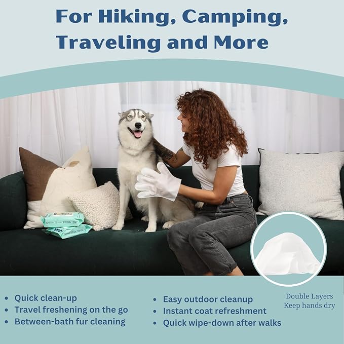 • 【Rinse-Free Dog Bath Wipes】Injoya Dog Glove Wipes provide a portable pet bath substitute. Our cleaning gloves for dogs are a convenient deodorizing and grooming solution between baths or when baths aren’t possible. Use them for outdoor activities like hiking, walks, or after the dog park before entering your car or home.