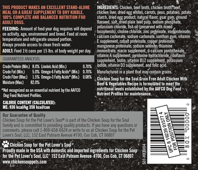 • Chicken Soup For The Soul Grain Free Wet Dog Food, Chicken, Turkey & Salmon Recipe, 13 Ounce Can (Pack of 12)