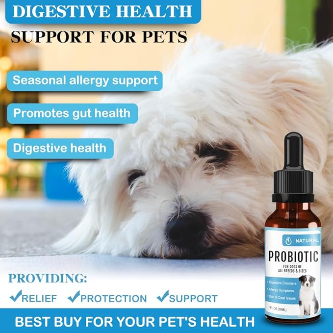 Probiotic for Dogs, Probiotic Drops for Dogs with Digestive Enzymes, Probiotics for Dogs Digestive Health, Diarrhea & Upset Stomach Relief + Gas, Constipation, and Allergy Relief.