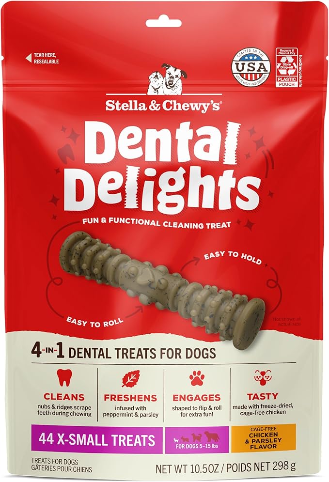 Stella & Chewy's Dental Delights with Freeze-Dried Chicken - Extra Small Dental Treats for Dogs, 10.5 Ounce Bag