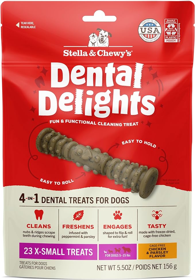 Stella & Chewy's Dental Delights with Freeze-Dried Chicken - Extra Small Dental Treats for Dogs, 5.5 Ounce Bag