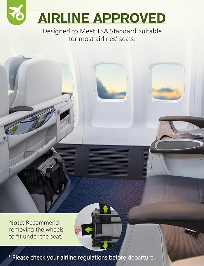 • 🐾 【Airline approved Pet Carrier】This pet carrier is approved by airlines and meets TSA standards. Size:18"*12"*13". Its spacious size provides ample space for your pet to move around, suitable for 2 small cats and one adult cat, or small dogs (approved by airlines, fits under most airline seats after removing the wheels).