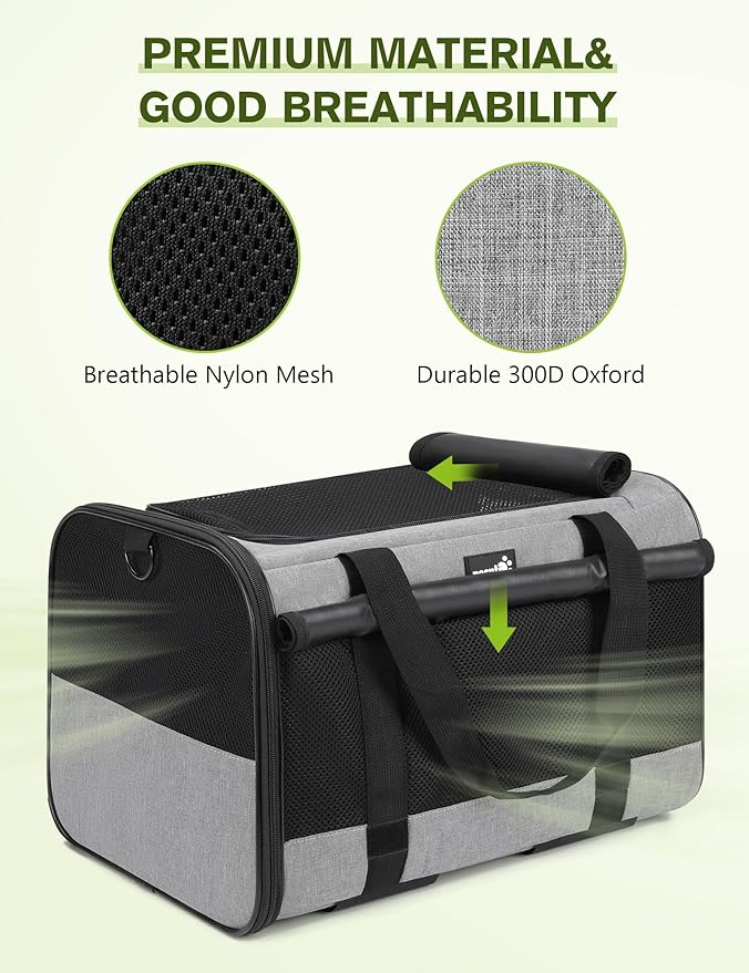 • 🐾 【Ventilated and breathable】The zippered mesh doors at the top and front make it easy for pets to enter and exit. They allow for free airflow, preventing overheating of your dog or cat and providing sufficient ventilation. The curtain design is aimed at helping to alleviate pet anxiety.