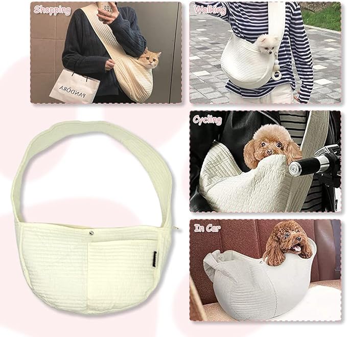 • High Practicality: Our puppy carrier has a pocket on it so that you can carry your personal belonging. Such as, you can put pet snacks, your keys, cell phone or wallet in the pocket of our dog sling bag. Different from ordinary pet bags, the design is unique. Off-white appearance, high-quality fabrics, stylish design and additional pockets on the outside of the bag. You can also bring your pet to shop when you don't bring your pet. Practical fashion.