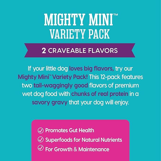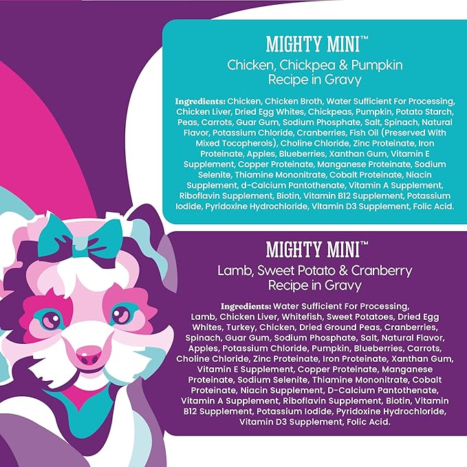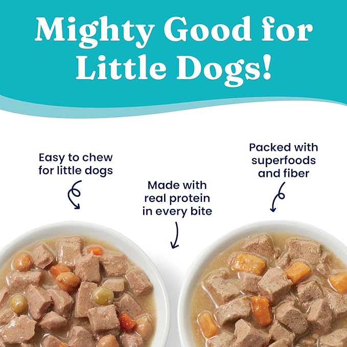 • Made for your Mighty Mini - Mighty Mini small dog wet food is a gluten and grain free wet dog food specially made for small breeds that promotes gut health and supports overall immunity by providing lean proteins and high fiber superfoods