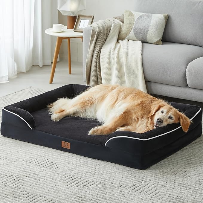 • MADE FOR COMFORT: The orthopedic dog bed features 3.5 inches of high-density egg foam to support and relieve your fur baby's muscles and joints. The large dog bed can provide extra support and safety, relieve joint pain or arthritis, and is a great choice for elderly and sick dogs.