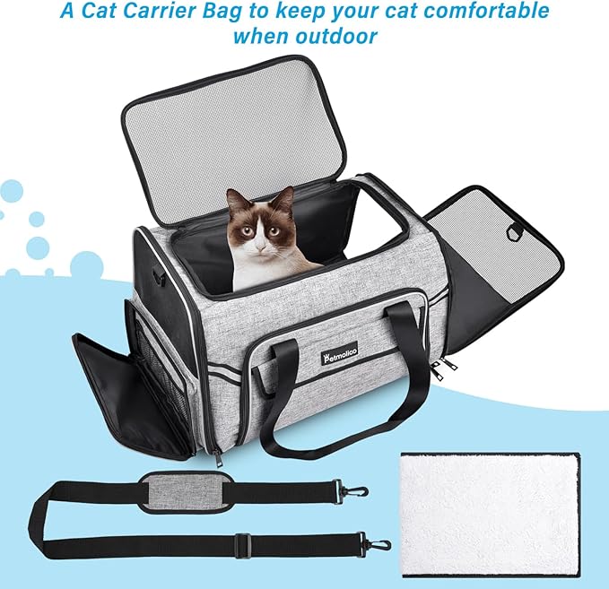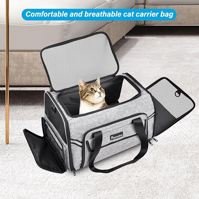 Soft-Sided Pet Carrier for Small Medium Cats, Puppies - Travel Carrier Pet Bag Up to 16LBs Airline Approved 3 Open Doors (Grey-X862)…