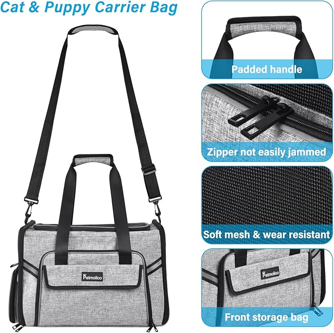 • Airline Approved Cat Carrier: Petmolico pet cat carrier size: 16"L x 11"W x 11"H, suitable for cat puppy weight up to 16 lbs. It conforms to most domestic airline under-seat dimension guidelines. ( NOTE: Please contact your airline prior to booking a flight to ensure this pet carrier meets their specific requirements. )
