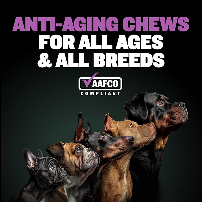 • LONGEVITY & VITALITY CHEWS FOR SENIOR DOGS: Bully Max's 2-in-1 Anti-Aging Multivitamin Chews are the perfect dog treats for ensuring your adult dogs and senior dogs thrive in their golden years. These specially formulated chews deliver essential support to maintain vitality and energy, helping your beloved companions age gracefully. Ideal as daily healthy soft dog treats, they keep your senior dogs active and full of life, providing the care and nourishment they deserve in their later years.