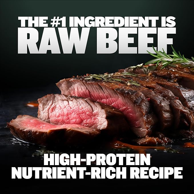 • VERSATILE DRY OR REHYDRATED SERVING: This Dog Food Toppers offer the versatility of serving either dry or rehydrated, catering to your dog's preferences. These muscle-enhancing toppers, rich in freeze-dried raw beef, apples, and sweet potatoes, boast 32% crude protein along with vitamins B12 and E. Ideal for all breeds, they provide a nutrient-rich meal enhancer that focuses on muscle growth and health, offering a balanced and delicious way to strengthen your dog's muscular health and vitality.