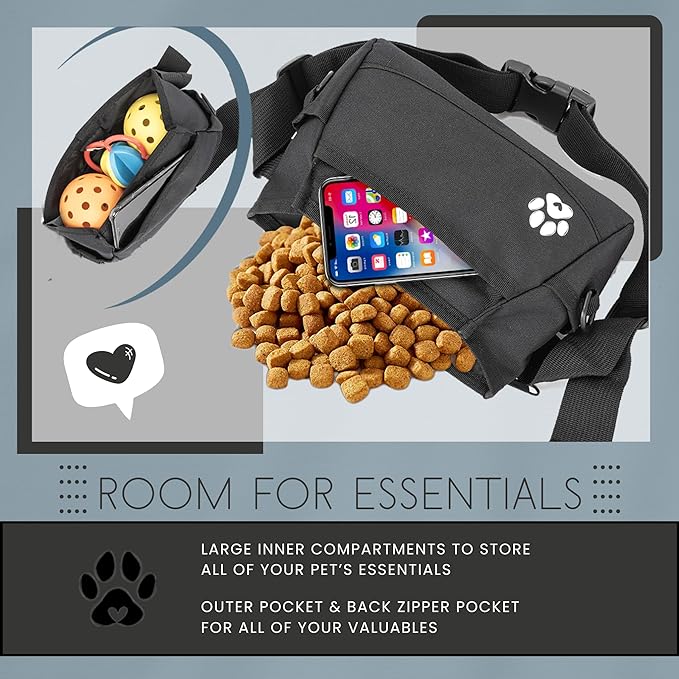 • Easy to Use: Our dog treat pouch is designed to fit your everyday use when training your pets. Our treat pouches for pet training feature a magnetic closure, allowing quick and one-handed access to your dogs favorite treats.