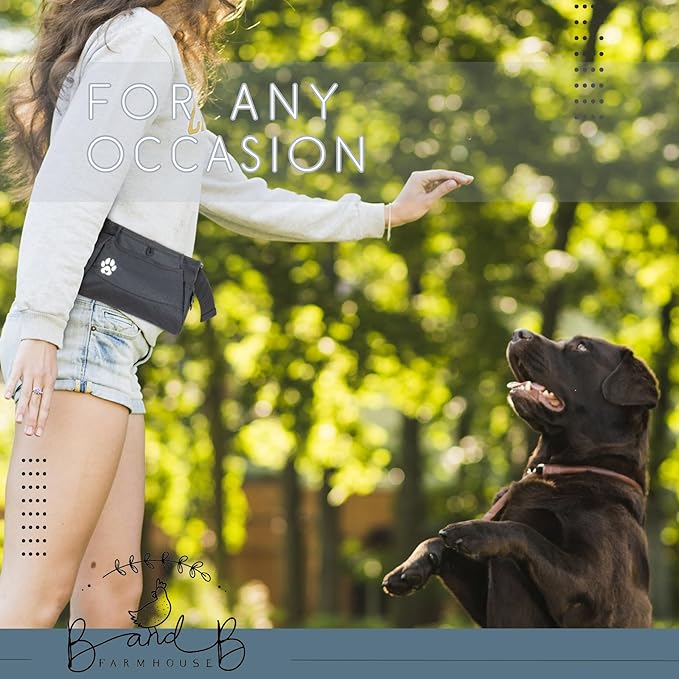 B&B Farmhouse Dog Treat Pouches for Pet Training - Custom Design - Dog Treat Bag for Dog Training & Behavior Aids - Fanny Pack for Dog Walking Bag - Puppy Treat Pouch & Black Belt Bag