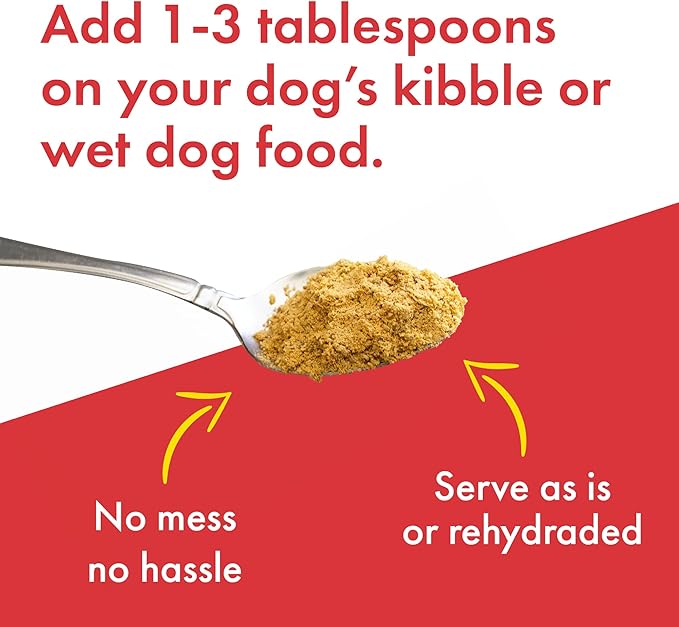 • Quick Digestibility & Easy Serving: Our unique freeze dried powder form ensures rapid digestibility, allowing your pet to absorb nutrients faster. Simply scoop and serve to top off your pet’s favorite meal with whole food nutrition.