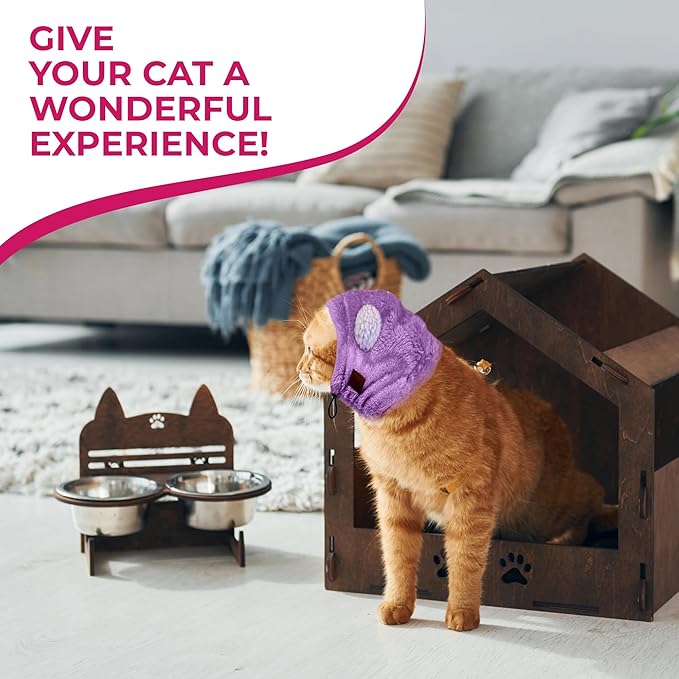 Adjustable Dog Noise Cancelling Ear Muffs Noise Protection - No Flap Ear Wraps for Dogs - Snoods Dog Headband Ear Covers for Anxiety Relief, Thunderstorms, Fireworks & Grooming (Purple, Large)