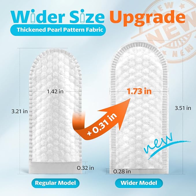 • 💗【Update Wider Finger Wipe Design】The update 1.73" wider finger wipes meet the needs of more customers, 0.31" wider than the regular model. Easy to clean pet's ears and save time, which is comfortable for dogs.
